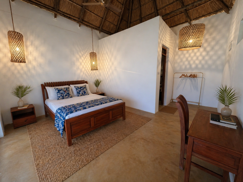 Experience the essence of our African-themed bungalows, thoughtfully designed with a blend of contemporary comfort and locally curated furnishings.
